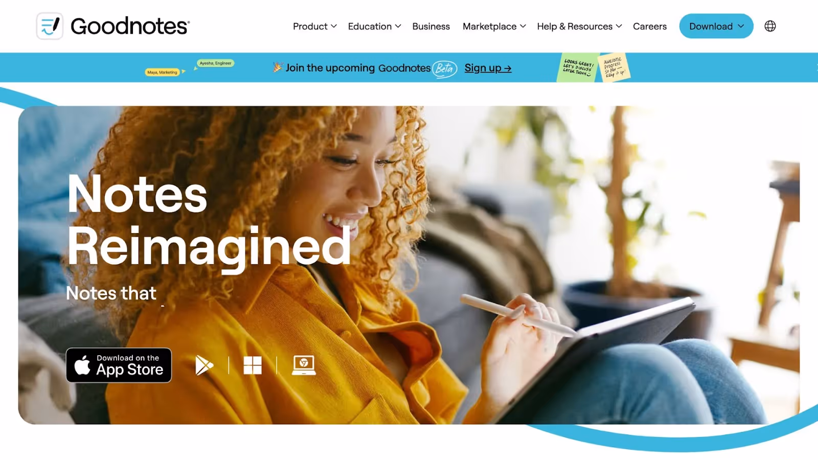 GoodNotesは、アメリカの大学生の間で非常に人気のあるデジタルノートアプリ。紙のノートのような自然な書き心地と、デジタルならではの利便性を兼ね備えているのが特徴です。iPadとApple Pencilの組み合わせで使用する学生が多く、手書きで講義のメモを取ったり、PDFの教科書に直接書き込みをしたりと、多様な使い方をすることができます。