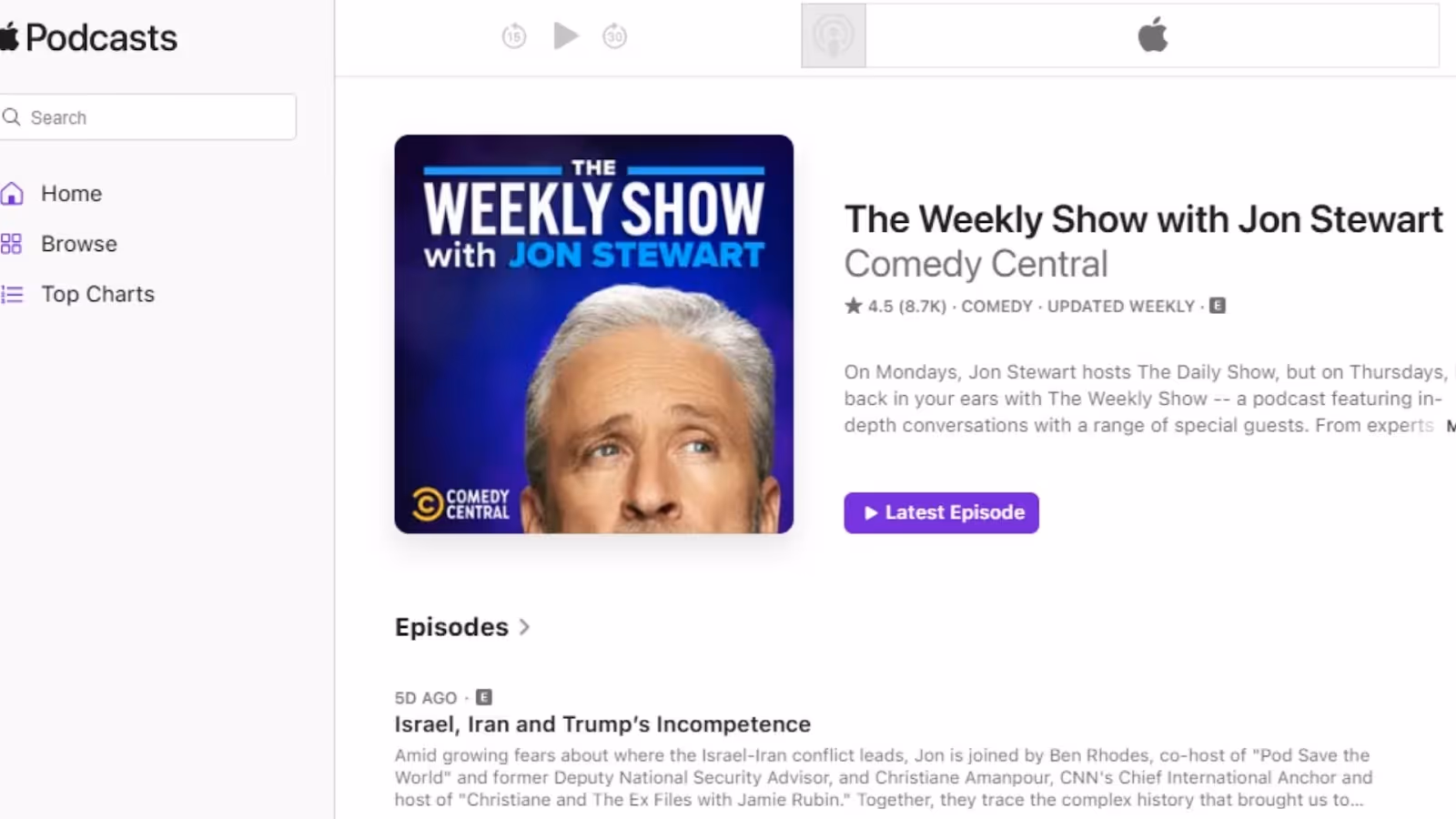 出典:Apple Podcastに記載の「The Weekly Show with Jon Stewart」