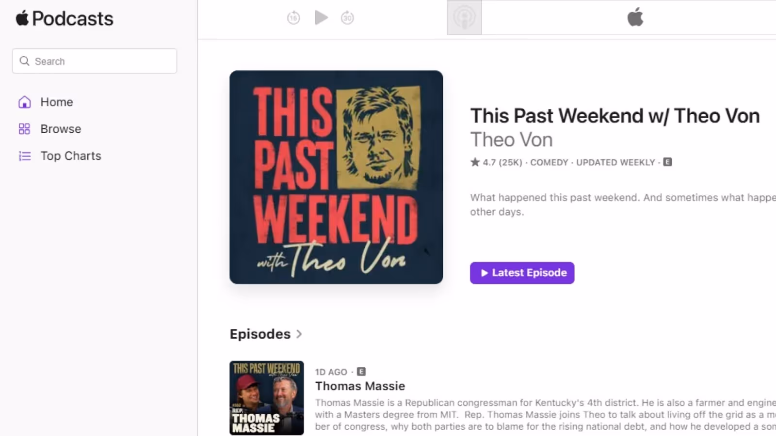 出典:Apple Podcastに記載の「This Past Weekend w/ Theo Von」