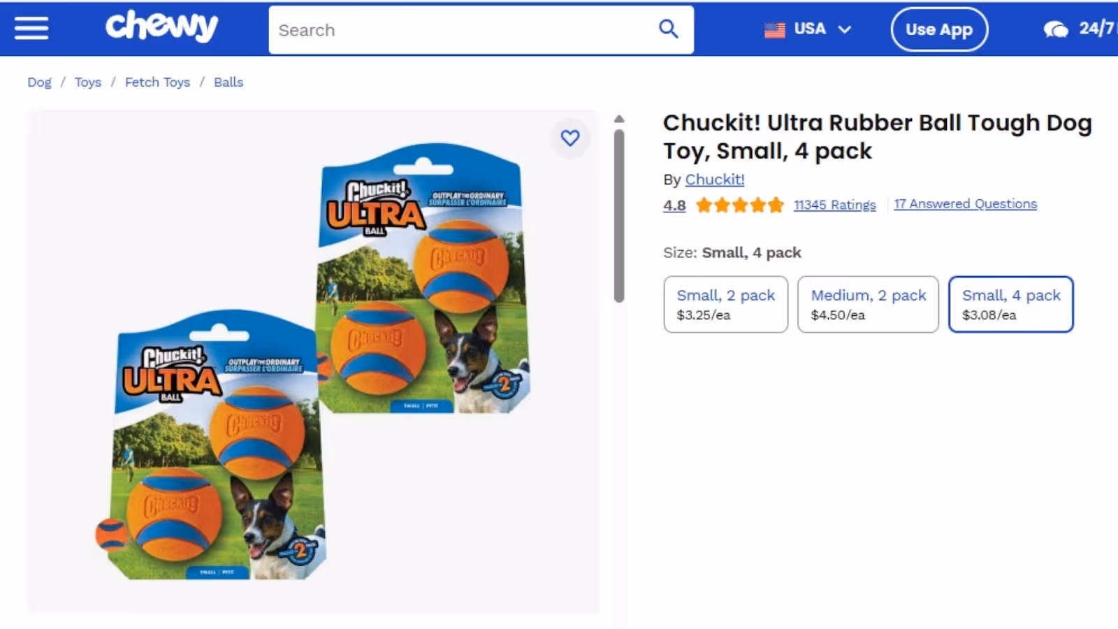 出典:chewyに記載されているChuckit! Ultra Rubber Ball Tough Dog Toy