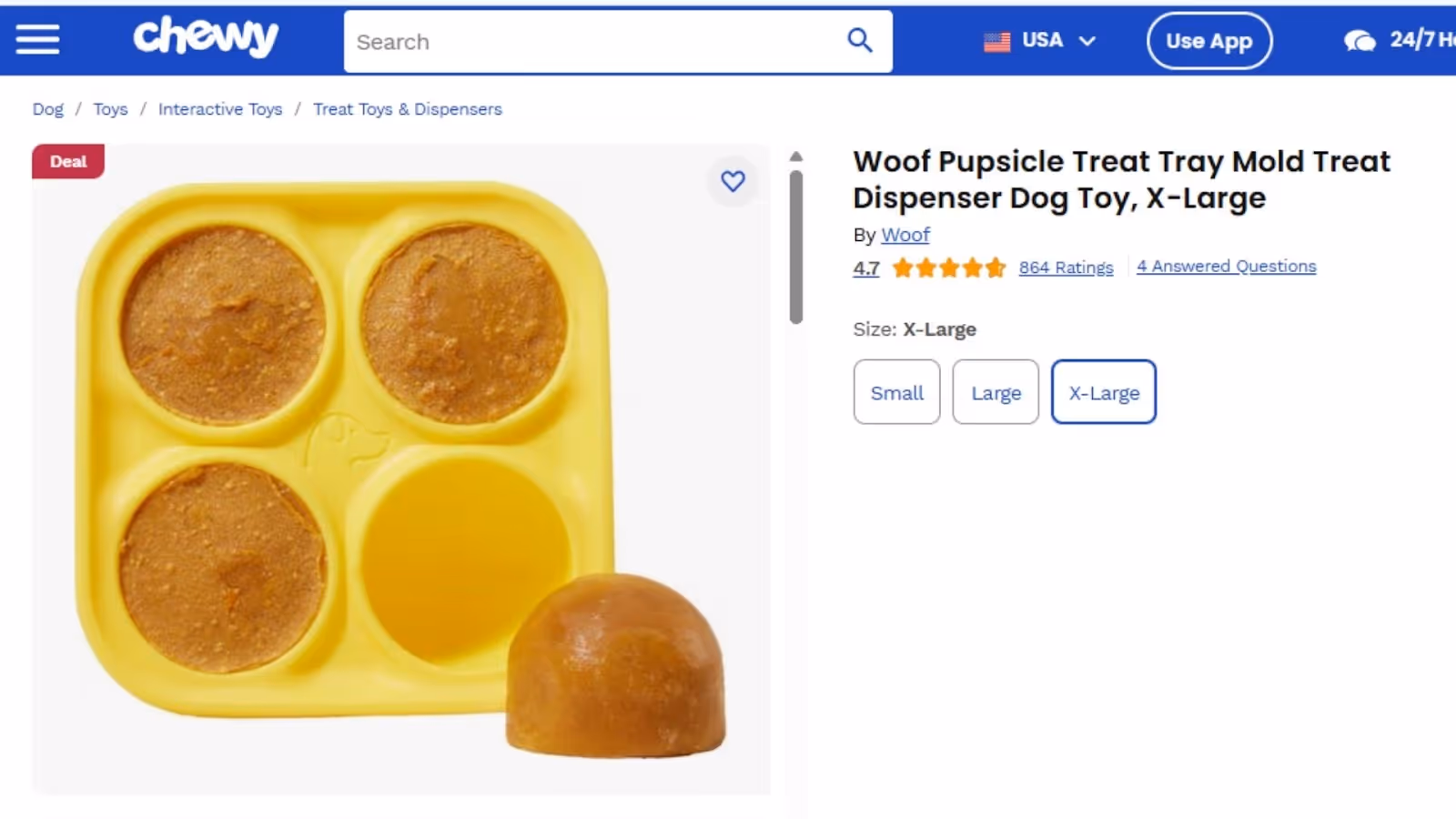出典:chewyに記載されているWoof Pupsicle Treat Tray Mold Treat Dispenser Dog Toy