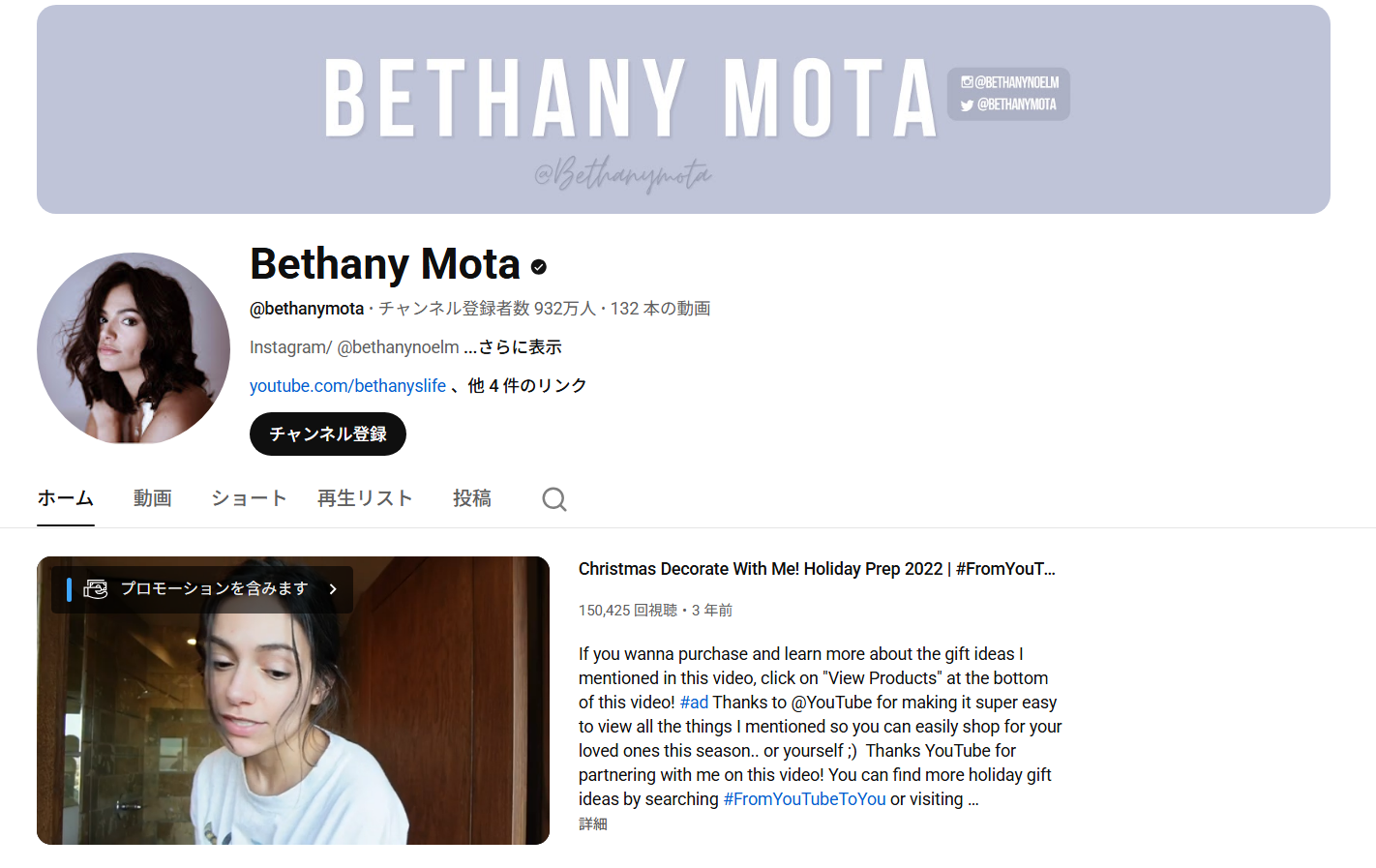 2009年から活動を続ける古参YouTuber、Bethany Mota。10代の頃から活動をはじめ、「部屋でファッションを紹介する」というスタイルを広めた先駆者です。YouTuber界のファッションお姉さん的なポジションで、アメリカのティーンの間で爆発的人気を獲得。着こなし術やトレンド解説の他、スクールメイクやデートメイク、セルフネイルやアクセサリー作りの動画などもアップしています。10代~20代の女子向けのコンテンツが豊富です。