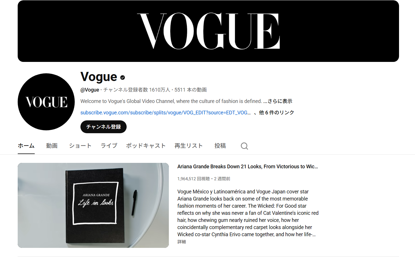 チャンネル登録者数:1610万人(2026年2月11日現在)