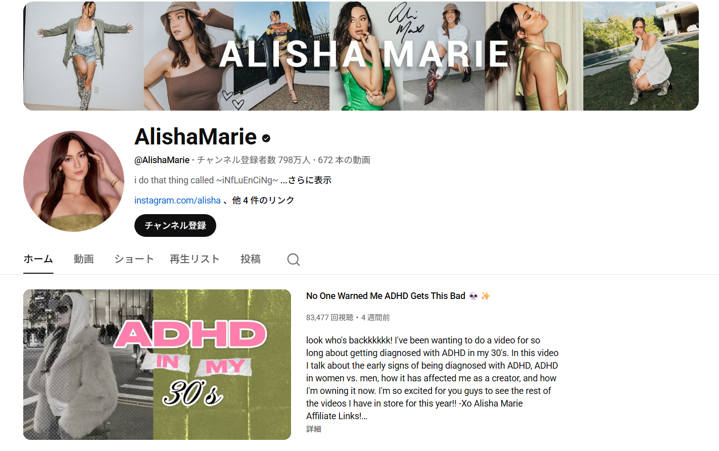 西海岸系ガーリーファッションで人気のカリフォルニア出身YouTuberのAlisha。その明るくキュートな雰囲気から、10代~20代の若者の人気の的に。ファッションだけでなく、撮影部屋や動画編集も色合いなどがオシャレで特徴的です。トレンドをつかみつつ、万人受けするような誰でも真似しやすいスタイルを紹介することに長けており、非常に努力家であると視聴者からも絶賛。モーニング・ナイトルーティン紹介動画や、学生あるあるを題材にしたコントも人気で、様々なジャンルのコンテンツがあります。