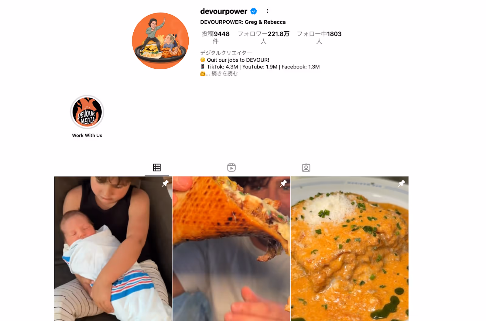 Instagram (@devourpower):フォロワー数221.8万人