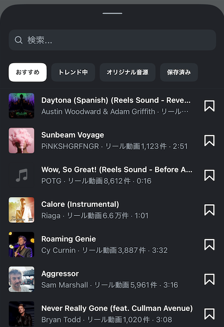 まず注意したいのが、ビジネスアカウントにおける楽曲の制限です。企業やクリエイターが「ビジネスアカウント」を利用している場合、著作権の都合上、商用利用が許可された「サウンドコレクション」しか選択できないケースが多々あります。そのため、流行のJ-POPや洋楽のヒット曲など、使いたい楽曲が候補に出てこない可能性があることをあらかじめ理解しておく必要があります。