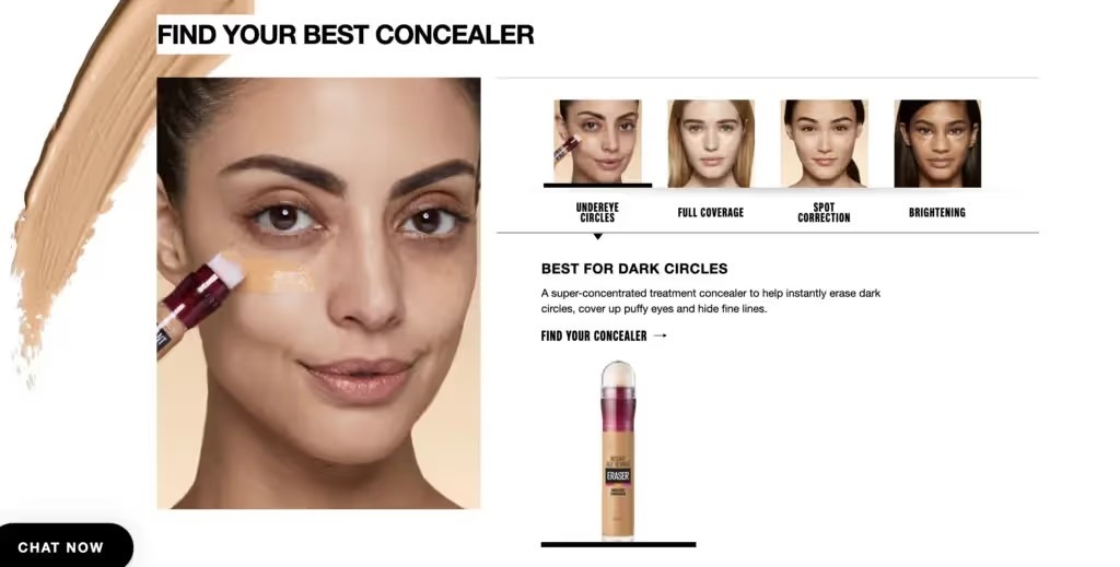 世界的な化粧品ブランドである MAYBELLINE New York では、販売国ごとにウェブサイト上のビジュアル表現を調整。