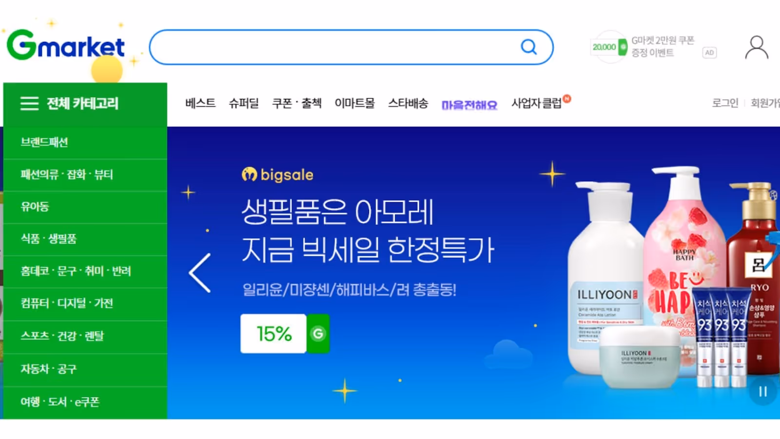 Gmarketは、韓国を代表する老舗のオープンマーケット型ショッピングサイトで、複数の出店者(セラー)が自由に商品を販売できるプラットフォームです。2000年初頭から運営されており、韓国国内外に幅広い顧客層を持っています。オープンマーケットとは、Amazonのマーケットプレイスのように多くの販売者が出店する形態で、Gmarketはその先駆者的存在です。豊富な商品ラインナップと頻繁に実施される割引イベントが特徴で、特に価格重視の消費者から根強い支持を集めています。