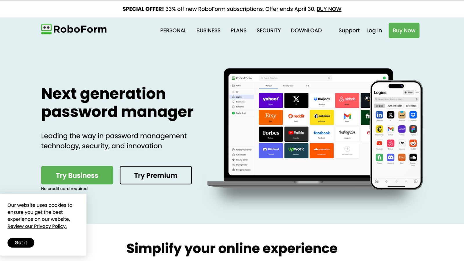 1Passwordと同じく5段階中4.8を獲得したRoboForm。高度なセキュリティレベルと手ごろな価格が魅力的です。こちらも全デバイス・ブラウザに対応しており、さらにインストールすればオフラインでもパスワードにアクセスすることができます。デザインが少々古くはありますが、表示が分かりやすく機能も多すぎないため初心者でも使いやすいです。シンプルかつ手ごろな価格であるため、基本的なパスワード管理機能を求める人にはうってつけです。無料版もあり、さらにプレミアムプランやファミリープラン、ビジネスプランなどさまざまなプランも。脆弱なパスワードをスキャンし、流出が検出された際は迅速にユーザーへ警告。24時間体制のサポート体制が敷かれ、さらには午前9時~午後5時まではライブチャットアシストも行われています。認証システムやパスキーも充実しているため、安心安全のパスワード管理アプリです。