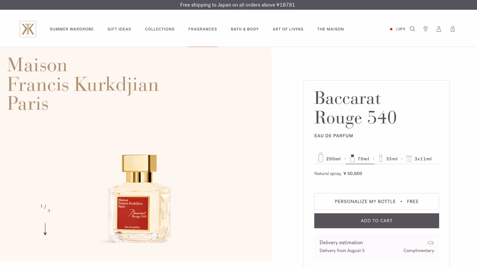 7. バカラ ルージュ 540 オードパルファム〈Maison Francis Kurkdjian〉