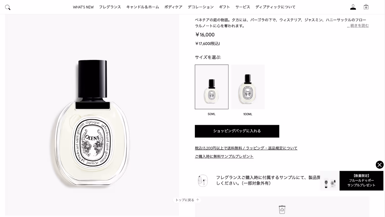 - デリーナ オードパルファム〈Parfums de Marly〉¥26,100(75ml 270$を50mlに換算)