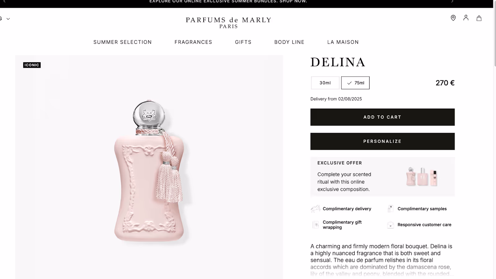 5. デリーナ オードパルファム〈Parfums de Marly〉