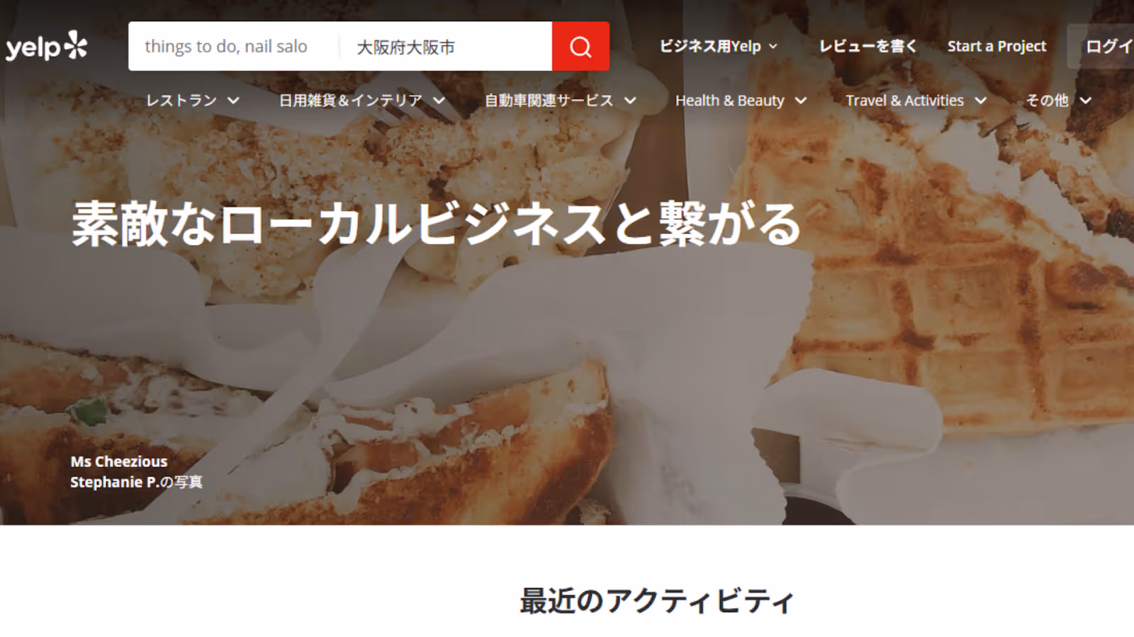 Yelpはレストラン、カフェ、歯科医院、美容院などサービス業レビューに強みを持つプラットフォームです。ユーザーは5段階評価と詳細なテキストレビューを投稿でき、レビューの質が高いことで知られています。特に都市部に住む30代〜40代のユーザーに人気があり、実名登録制という特徴から「信頼できるリアルな声」が集まる場所として定評があります。一方でレビューの厳しさが話題になることもあり、企業にとっては口コミ管理が重要なポイントとなっています。