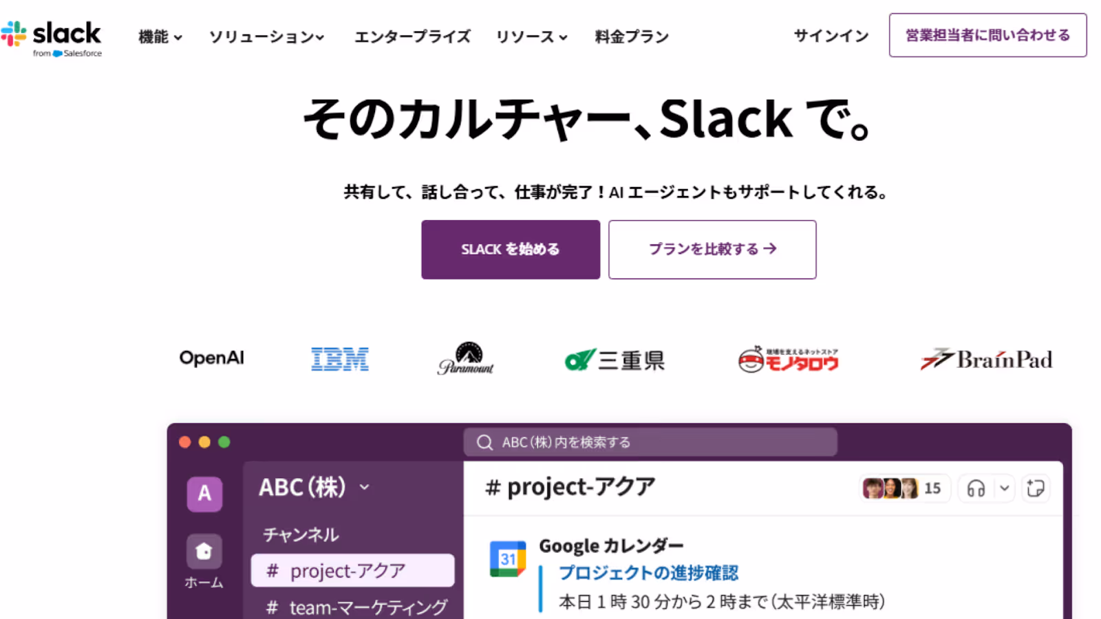 Slackは、チームのコミュニケーションを劇的に効率化するクラウド型チャットツールです。メールや対面のやり取りに比べ、リアルタイムで気軽にメッセージを交換できるため、スタートアップのスピード感ある業務には特にマッチしています。Slackでは、チャンネルと呼ばれるグループチャットを作成し、プロジェクトや部署ごとに会話を整理できるため、情報の見落としや混乱を防ぎやすくなっています。また、1対1のダイレクトメッセージも充実しており、細かいやり取りもスムーズです。