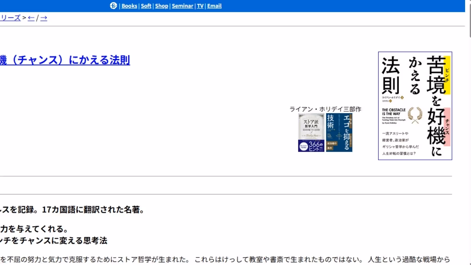 - 苦境(ピンチ)を好機(チャンス)にかえる法則:The Obstacle Is the Way: The Timeless Art of Turning Trials into Triumph