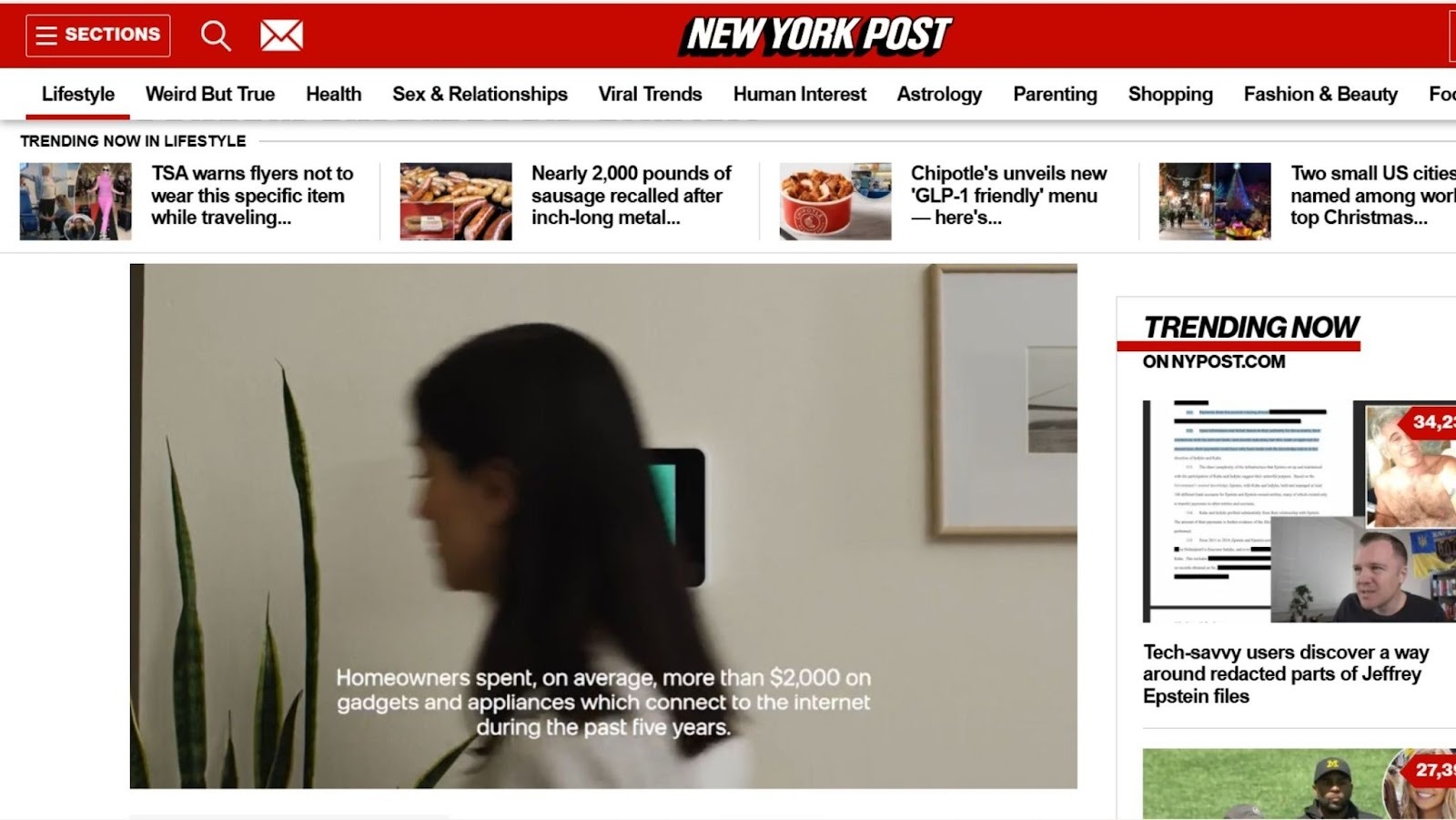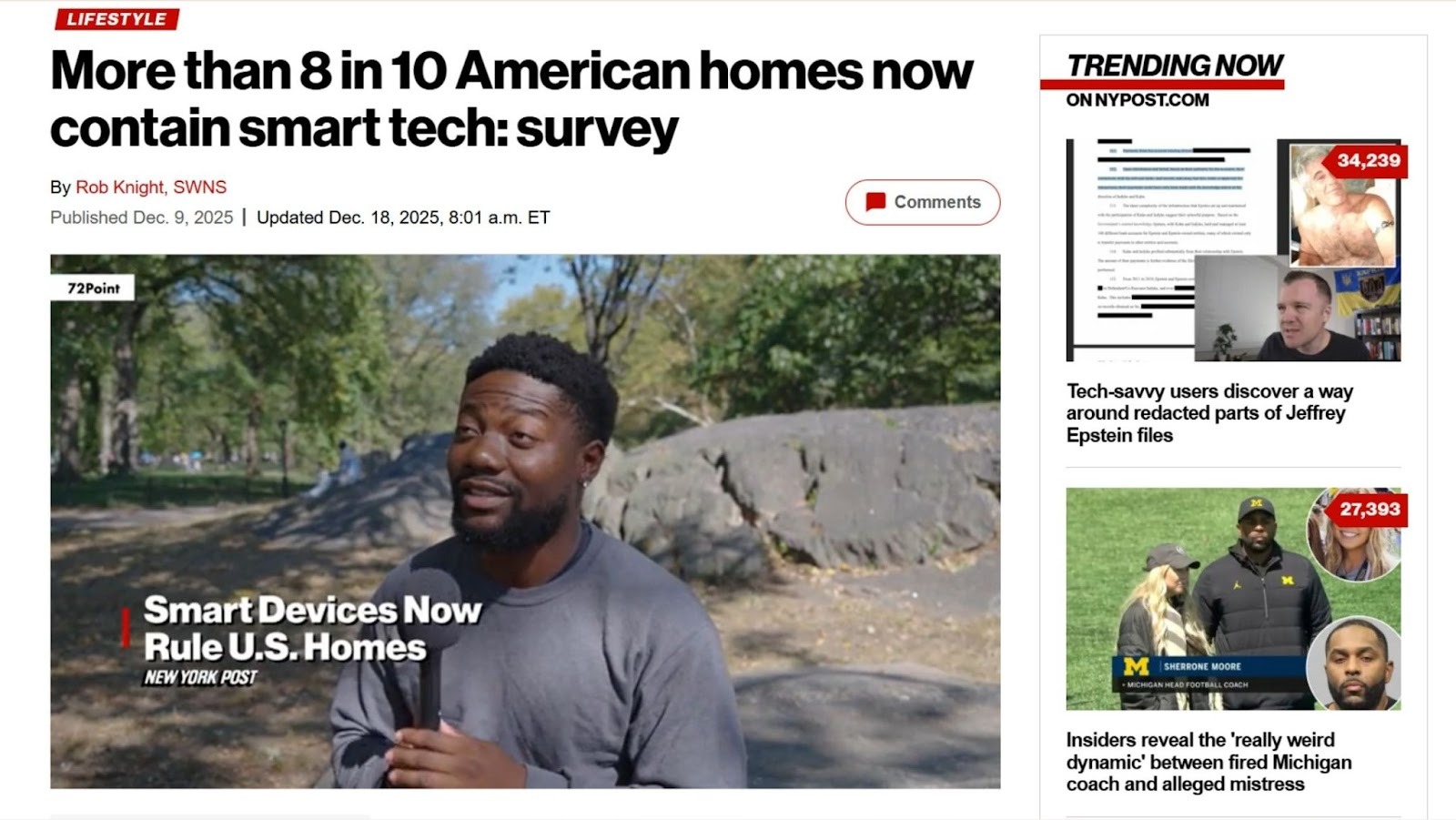 出典:NEW YORK POSTのMore than 8 in 10 American homes now contain smart tech: survey