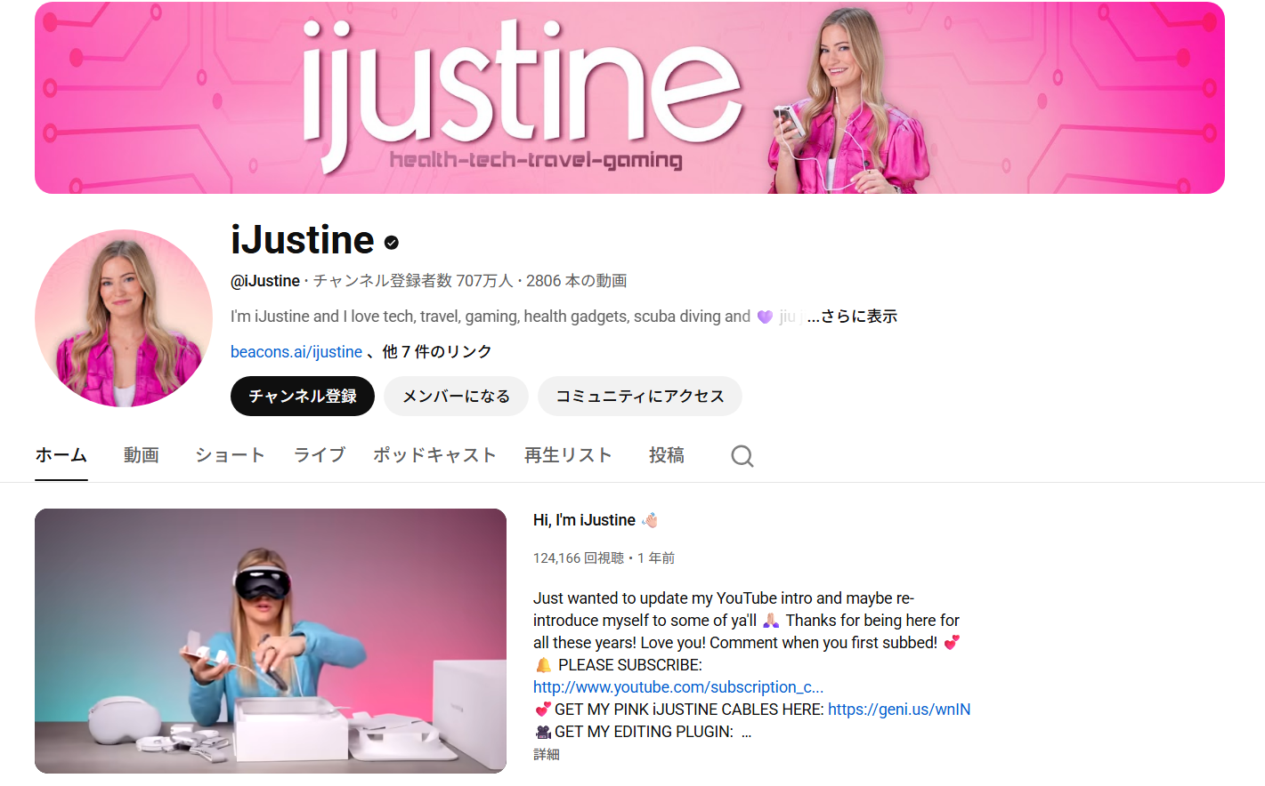 iJustineは、Justine Ezarik氏によるガジェット系のチャンネルです。明るく親しみやすいキャラクターと、Apple製品を中心としたテックレビューで人気を集めています。テクノロジーに詳しくない視聴者でも理解しやすい解説が特徴で、特に女性や若年層からの支持が高い点が他のテック系YouTuberとの大きな違いです。他にも日常のVlogやガジェットを使ったライフスタイルに関する動画も展開しており、商品を使う楽しさや利便性まで伝えてくれます。映像はカラフルでポップな印象ながらも、製品の機能や使い心地をしっかり押さえた実用的な内容で構成されています。ユーザーが親しみを持つ、非常に魅力的なインフルエンサーの1人です。