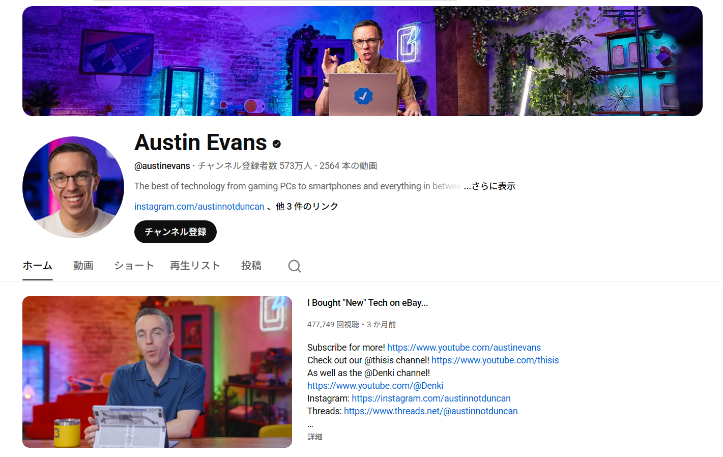 Austin Evans氏が運営するAustin Evansは、ゲーム・スマートフォン・PCなどの最新ガジェットを軽快なトークで紹介するテック系YouTubeチャンネルで、親しみやすくカジュアルなスタイルが特徴です。レビュー内容は幅広く、フラッグシップスマホから格安デバイス、ゲーミングPC、アクセサリに至るまで多岐にわたります。特に新旧製品の比較や、コストパフォーマンスを意識した動画は視聴者から高い評価を得ているジャンルの1つです。また、トレンドに敏感で、最新デバイスの話題に即対応するスピード感も強み。製品の実力を分かりやすく紹介しながら、エンタメ要素も加えたバランスの良い構成で、幅広い層にリーチできるチャンネルです。