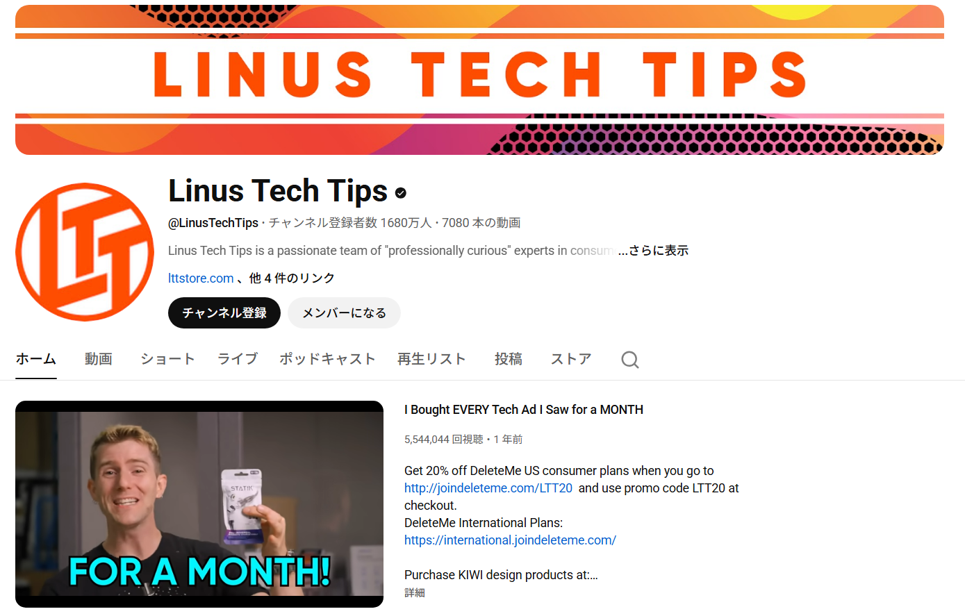 登録者数:1,680万人(2026年2月9日現在)
