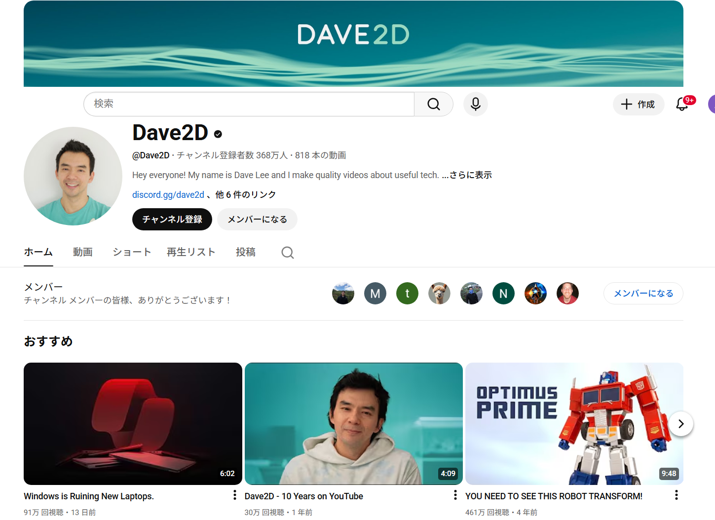 登録者数:368万人(2026年2月9日現在)