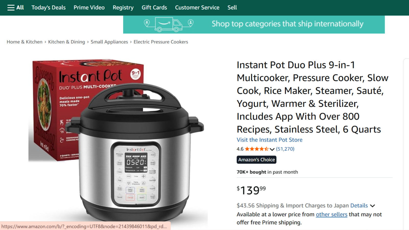 出典:Instant Pot Duo Plus(9-in-1 マルチクッカー)のアマゾン商品ページ