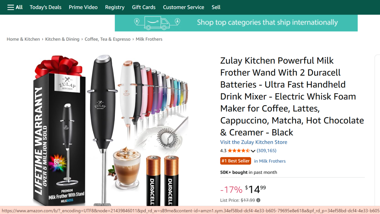 出典:Zulay Kitchen ミルクフォーマーのアマゾン商品ページ