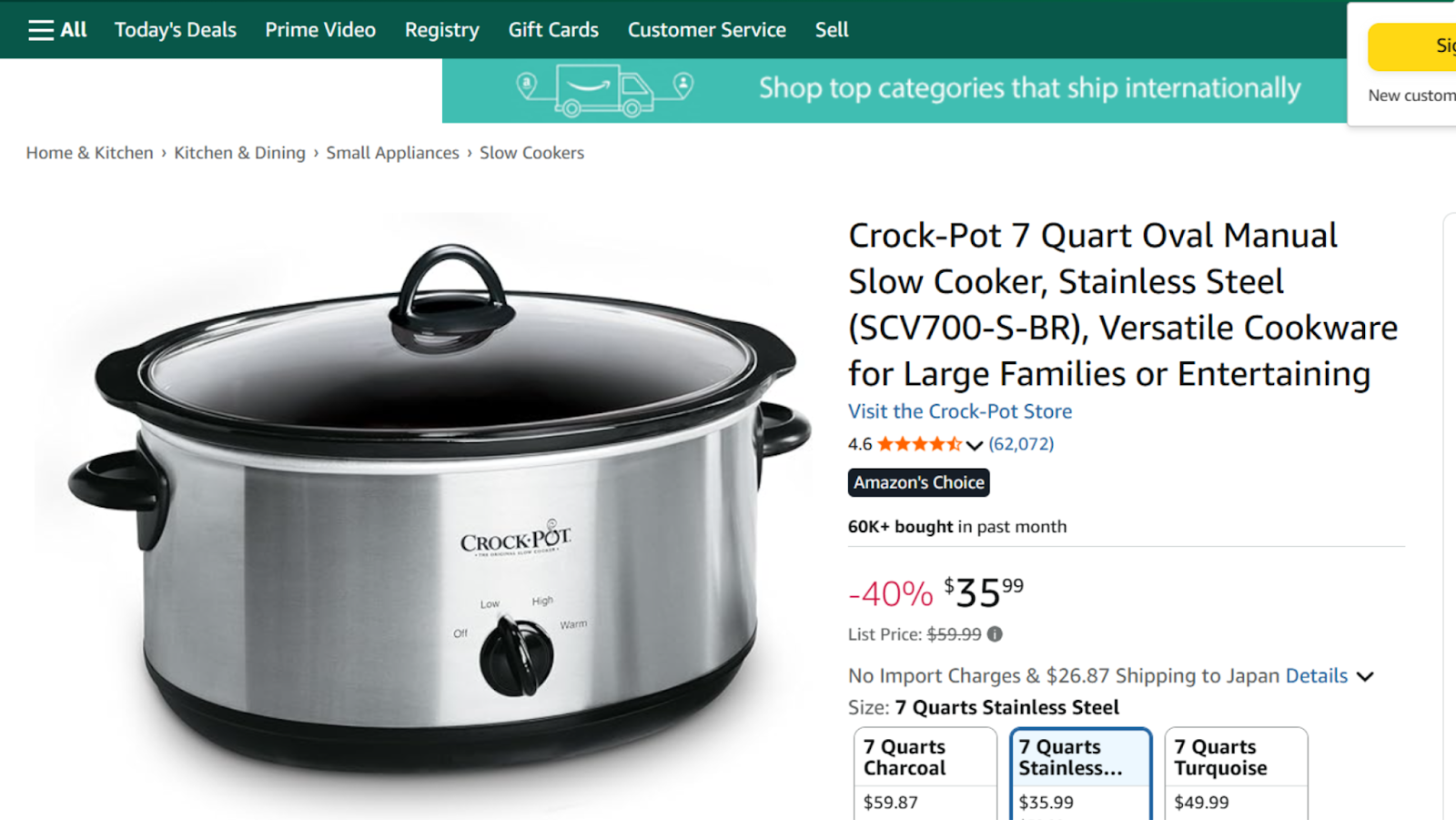 出典:Crock-Pot 7クォート スロークッカー(SCV700-S-BR)のアマゾン商品ページ