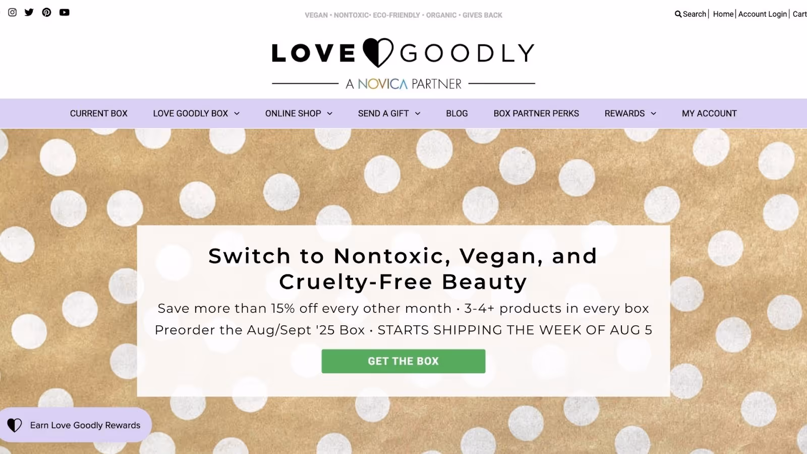 Love Goodlyは、隔月で届くヴィーガン&クルエルティフリーのビューティー・ウェルネスボックスです。ナチュラル化粧品、スキンケア、エシカルファッション小物、スーパーフードなど、ライフスタイル全般に広がるヴィーガン製品を体験できます。全商品は非毒性・動物実験なしで選定されており、サステナブルで倫理的な暮らしを実践したい女性を中心に人気を集めています。ギフトにもぴったりなパッケージで、満足度も高いです。