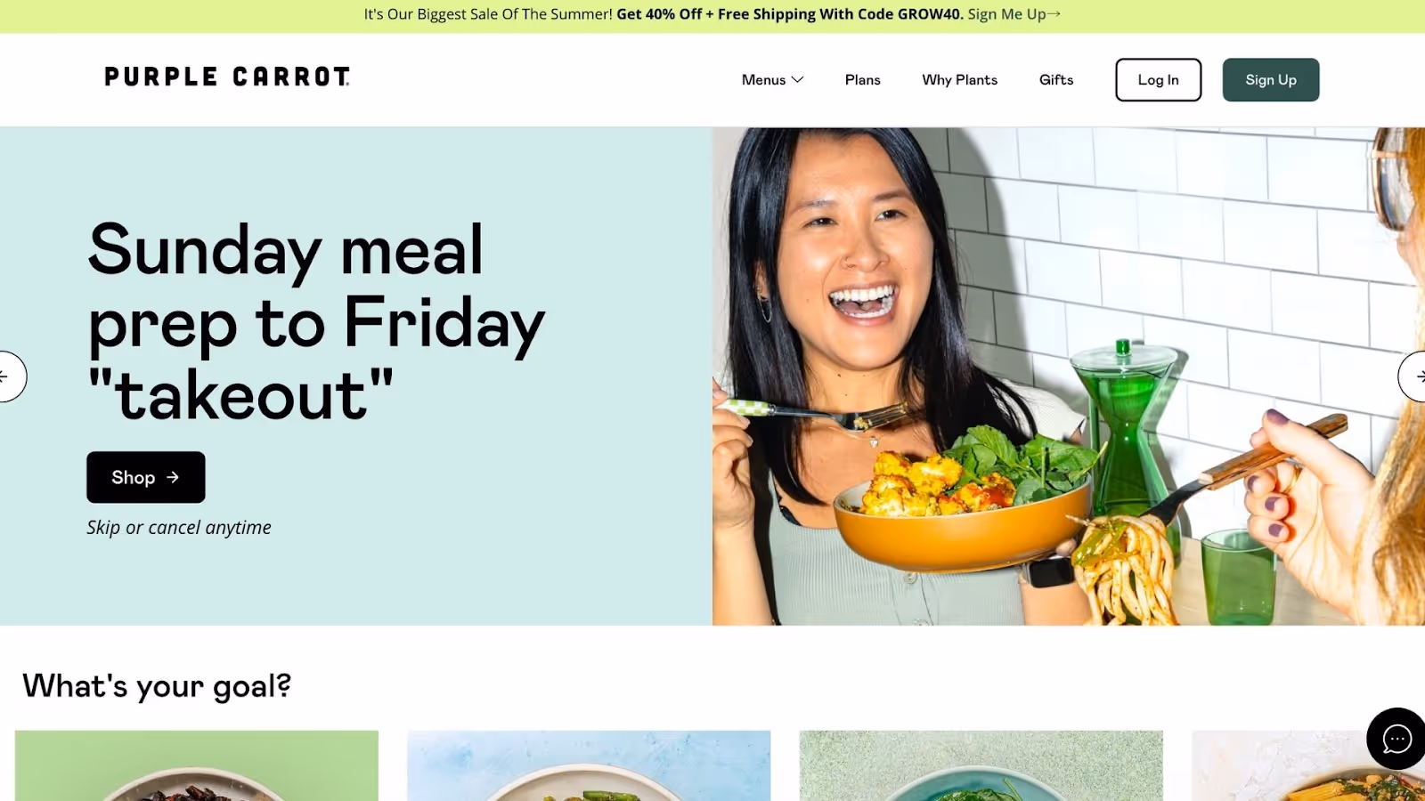 Purple Carrotはアメリカ初の完全ヴィーガン・ミールキットサービスで、植物由来の健康的な料理を自宅で簡単に調理できる点が魅力です。毎週届くレシピと食材は、栄養バランスが取れた本格的なメニューから、時短で作れる「Less Prep」タイプまで幅広く用意されています。環境に配慮したサステナブルな運営方針も支持を集めており、ヴィーガン初心者から熟練者まで幅広い層に人気です。冷凍済みミールも提供しており、忙しいライフスタイルに柔軟に対応できるのも大きなポイントです。