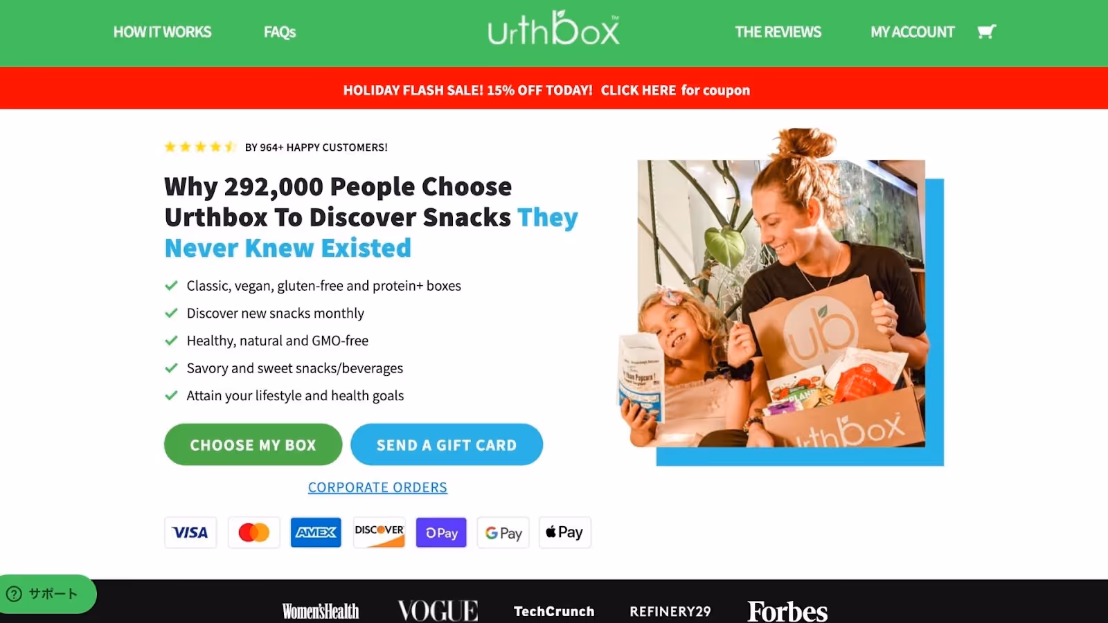 UrthBoxは、オーガニックで非遺伝子組換え(GMOフリー)のナチュラルスナックを月ごとに厳選して届けるボックスサービスです。ヴィーガン専用のプランもあり、チップス・クッキー・ドライフルーツ・ドリンクなど、日常のちょっとした楽しみとして取り入れやすい商品が豊富にそろっています。商品は厳しい基準で選ばれており、品質の高さに定評があります。サステナブル志向のユーザーやヴィーガンライフを始めたばかりの人にもおすすめです。