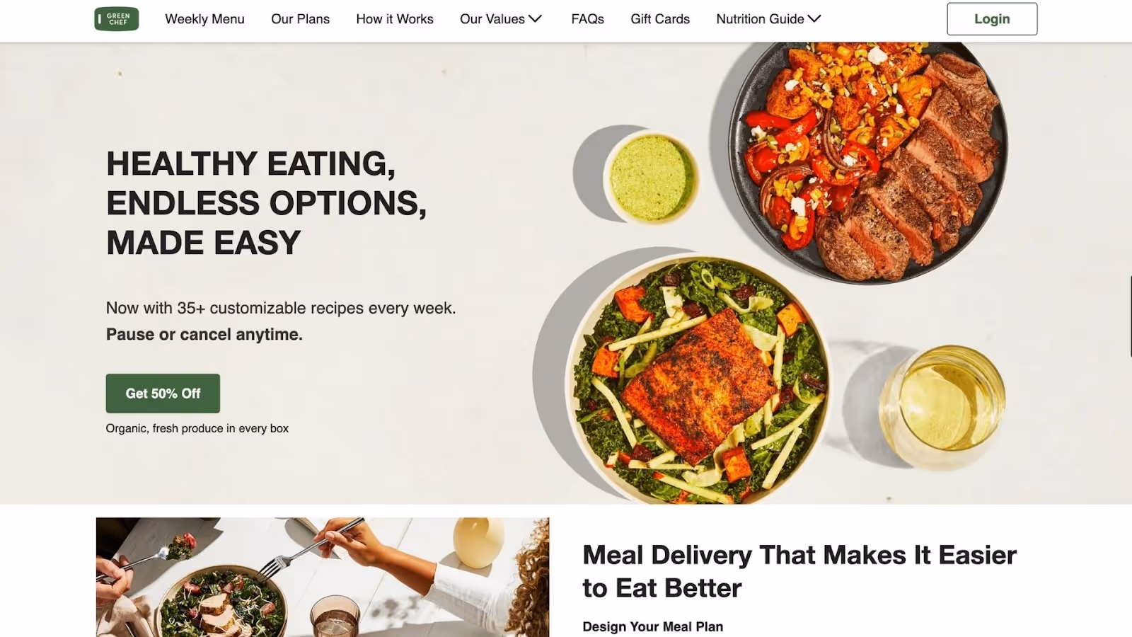 Green ChefはUSDA認証のオーガニック食材を使用したミールキット配送サービスで、ヴィーガンだけでなくベジタリアン、ケト、グルテンフリーなど、さまざまな食事スタイルに対応しています。レシピは栄養士が監修しており、味・見た目・健康バランスの三拍子そろった食事が楽しめます。ヴィーガンプランでは、季節の野菜や豆類、全粒穀物を活かした創造的な料理がラインナップされており、料理を楽しみながら無理なくヴィーガンライフを実践したい人に最適です。
