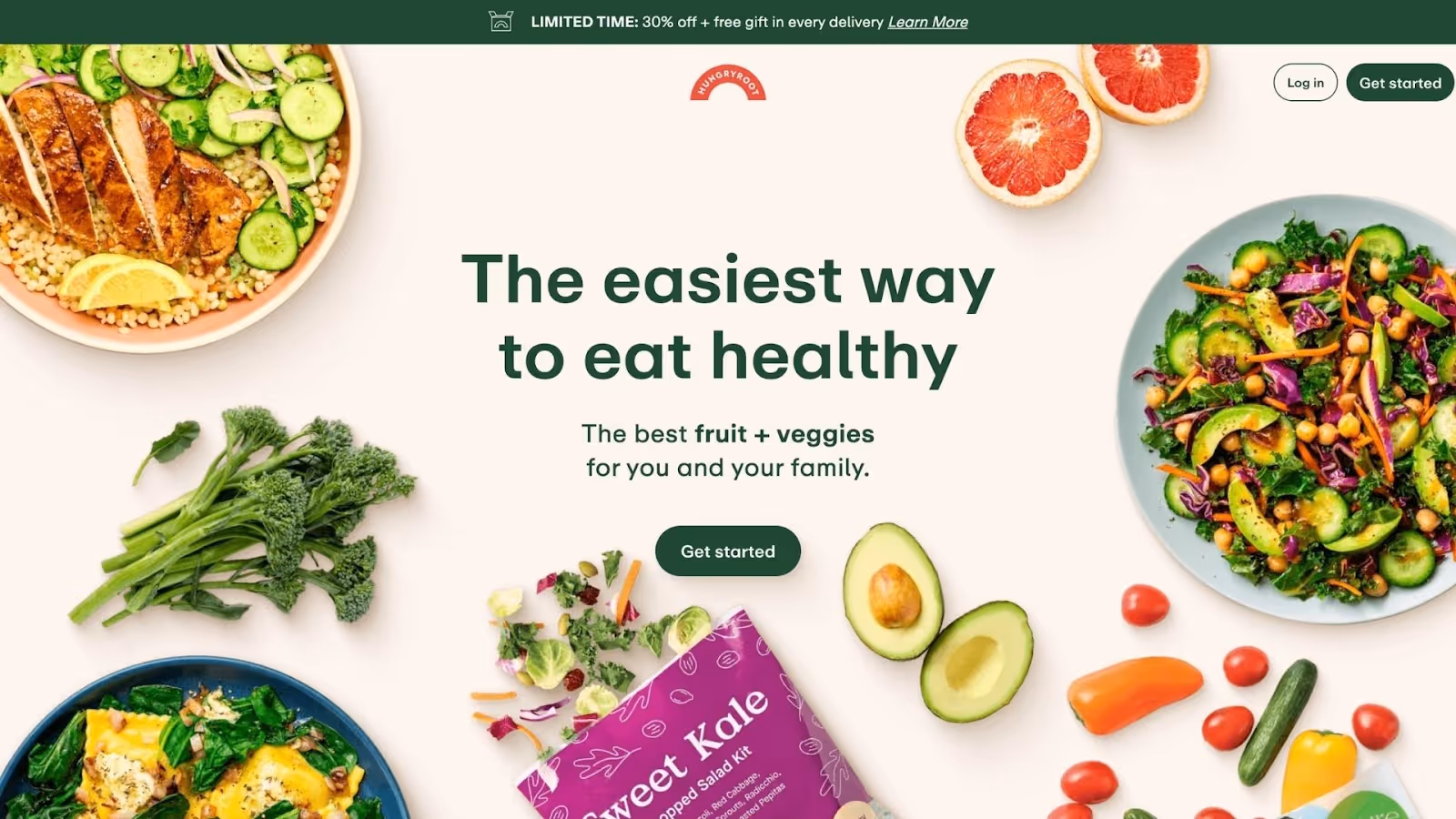 Hungryrootは、ミールキットとグロサリー(食材)を組み合わせてパーソナライズ配送するユニークなサブスクです。健康的で植物ベースのアイテムが豊富にそろっており、ヴィーガンオプションも充実。調理は10~20分で完了するものが多く、平日の忙しい夕食にもぴったりです。AIを活用した好みに応じたレコメンド機能もあり、継続利用することで自分に合った食事が届くよう最適化されていくのが特徴です。ファミリー世帯や健康志向の若年層にも支持されています。