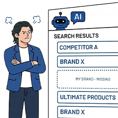 ChatGPTやPerplexityで業界関連の質問をすると、競合は表示されるのに自社は一切出てこない。AI時代の検索に対応できていない。